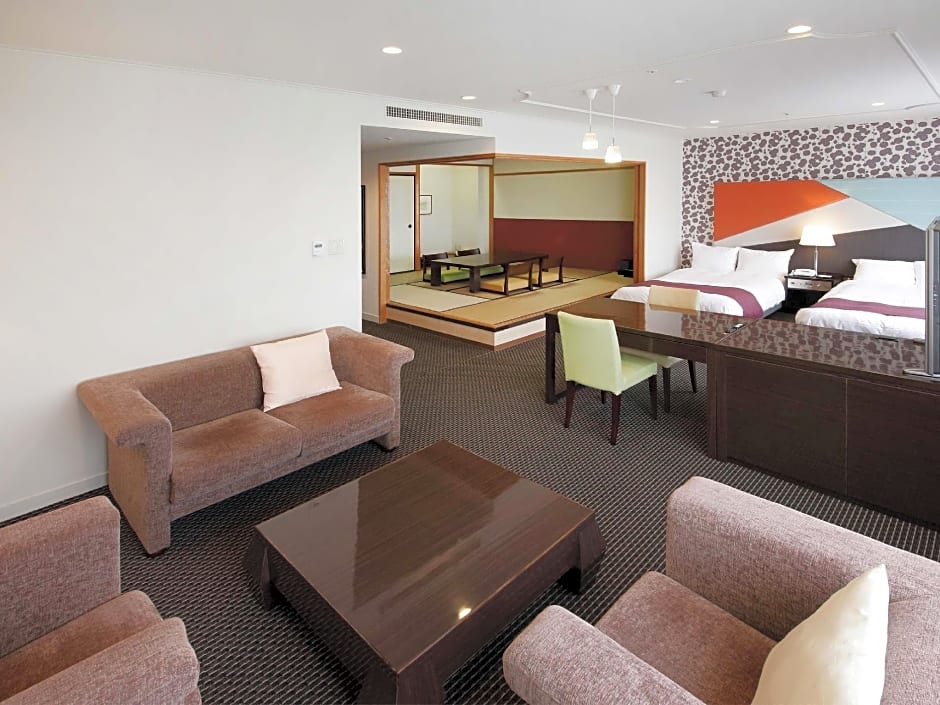 This spacious suite is consisted of of 1 bedroom, a seating area and 1 bathroom with a bath and a shower. The air-conditioned suite offers a flat-screen TV with satellite channels, tatami, executive lounge access and a wardrobe. The unit offers 2 beds and 4 futons.